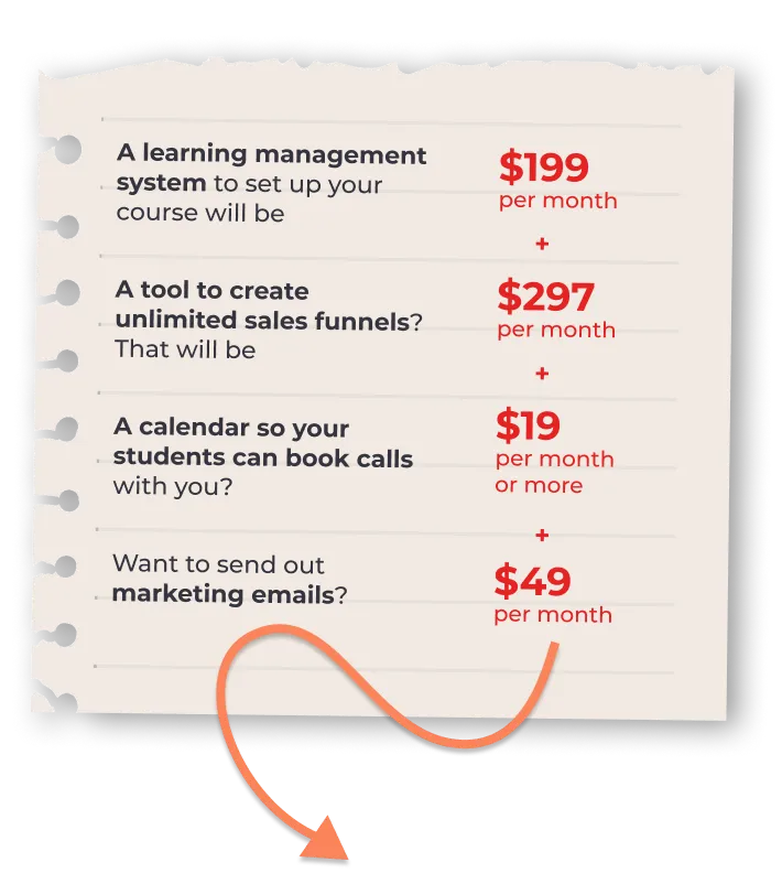That’s a 33% discount if you were to pay the regular monthly price AND once you’re done with the course, our team will fully set up your learning management system for you so you don’t have to worry about that part of the tech stack.